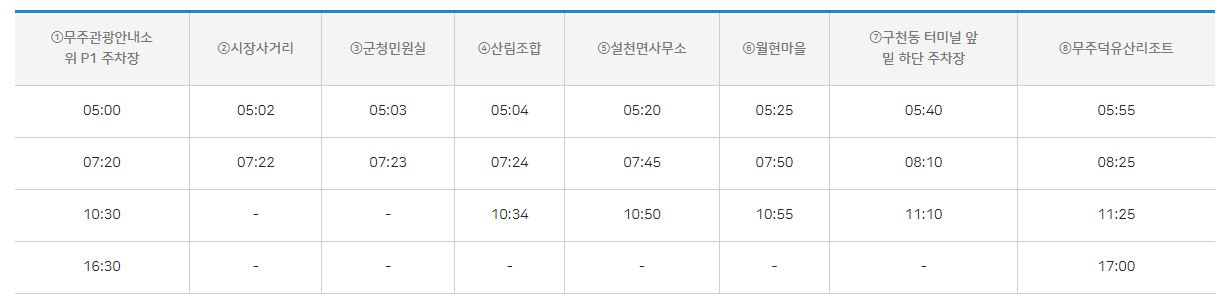 From Muju Tourist Information Center (P1 Parking Lot) → To Muju Deogyusan Resort